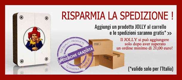 Spese di spedizione gratuite per ordini superiori ai €70,00 o per chi inserisce nel carrello un prodotto Jolly (solo in ordini superiori ai €20,00, spedizione esclusa).