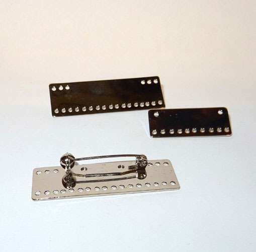Base in metallo argentato per spilla rettangolare cm 3 x 1,2