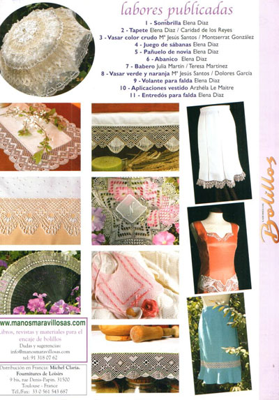 tutte le riviste hanno parecchi progetti con disegni a grandezza naturale, spiegazioni immagine merletto ed ingrandimento dei particolari, inoltre hanno alcune pagine di spiegazione dei punti base e dei passaggi o punti particolari presenti nei progetti presentati nella rivista.