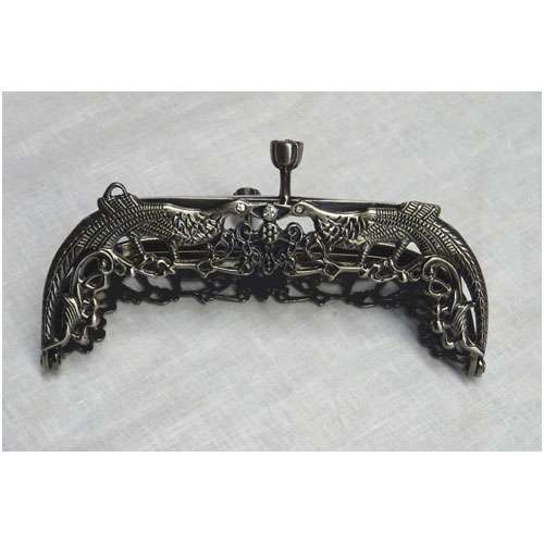 Chiusura per borsetta pavoni, colore argento brunito cm 12 x 5