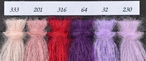 Mohair fleurdelise silke, gr 25/250 mt, ferri n°2,5/4,5, 22 colori