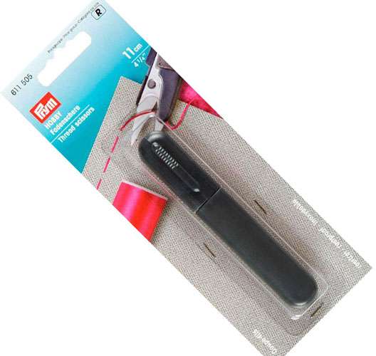 Forbice tessitore tagliafili in acciao inox con tappo e manici in plastica nero