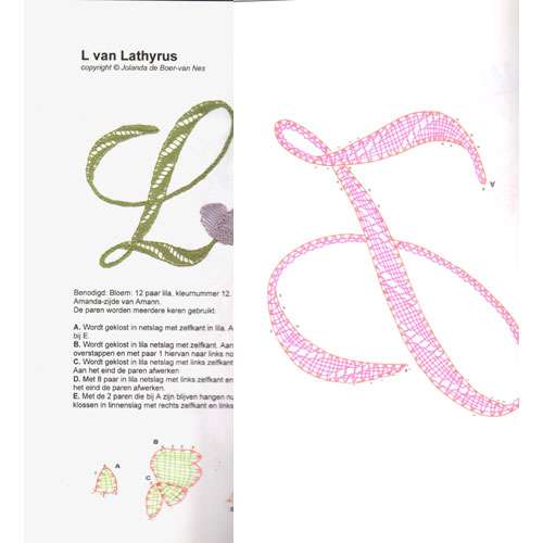 disegni, immagine del merletto, disegno con legenda con codice colore e spiegazione del fiore sempre con passaggi e codice colore