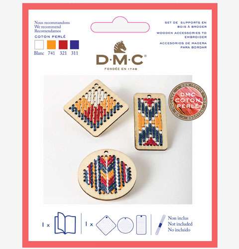 4 kit pendenti in legno da ricamare, dmc