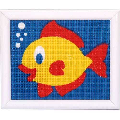 Realizza con il tuo bambino questo pesciolino a mezzo punto. Condividi un momento divertente e creativo che lo aiuterà a sviluppare la sua manualità. Molto colorato, facile e veloce da realizzare, il bambino potrà decidere se incorniciarlo e appenderlo nella sua stanza o personalizzare il suo accessorio preferito.