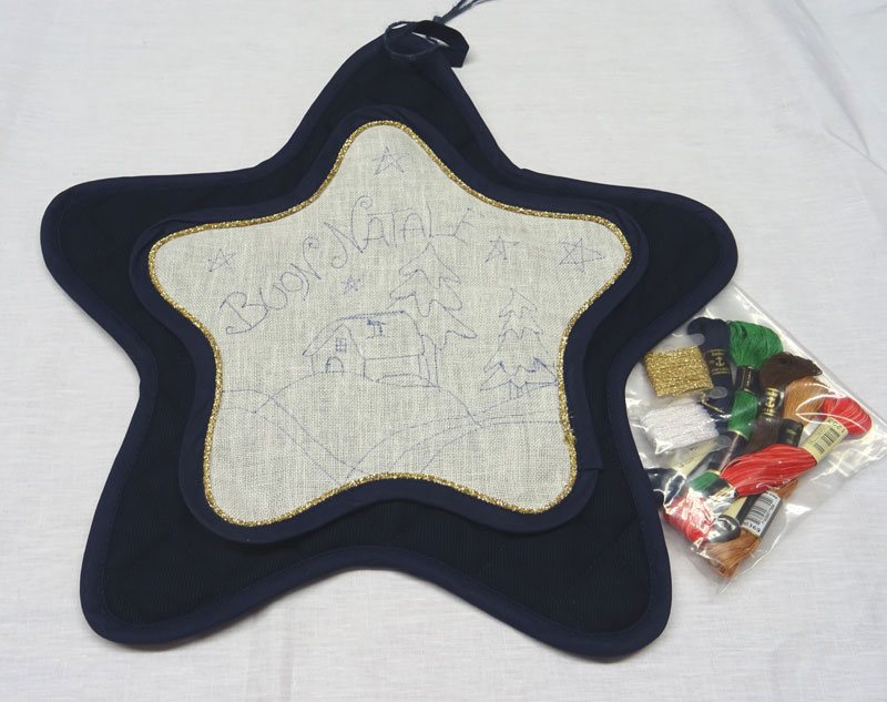 stella in lino rifinita con bordino oro su tutto il perimetro della stella