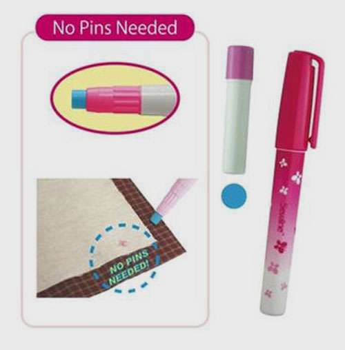 Penna con colla per imbastire tessuti, passamanerie, pizzi e cerniere lampo senza ago
