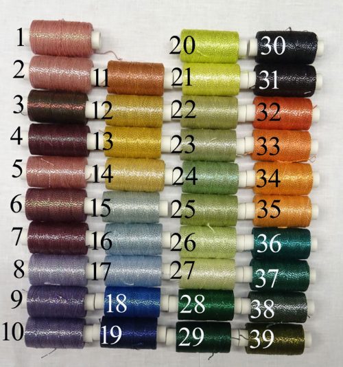 filo formato da 3 fili di cotone + 1 lametta di metallizzato che avvolge tutti 3 i fili a spirale