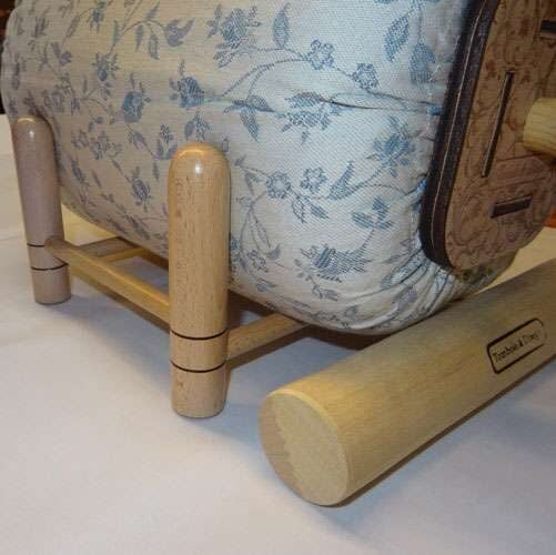 tombolo o cuscino per merletto ad ago di burano con cassetto in legno, murello in legno e supporto da tavolo