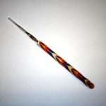 Uncinetto punta dorata 0,50/22 con manico in legno di robinia e inserto di resina smeraldo