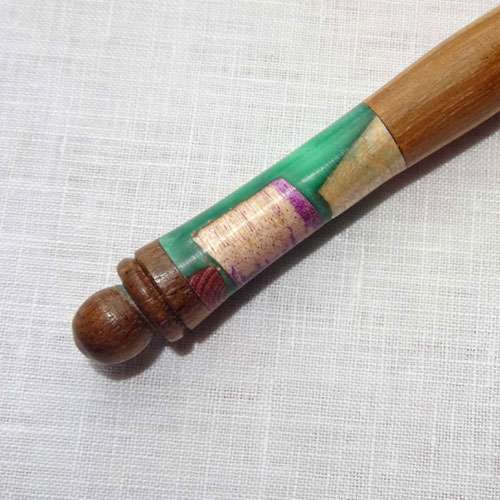 Uncinetto punta dorata 0,50/22 con manico in legno di robinia e inserto in resina smeraldo